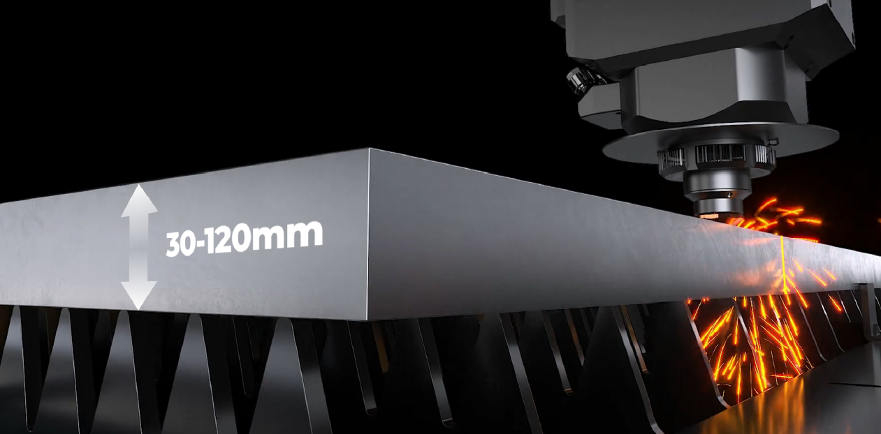 Maneja sin esfuerzo chapas metálicas ultra gruesas de 30 mm a 120 mm. Equipado con una fuente láser de alta potencia, ofrece penetración profunda, corte a alta velocidad y un rendimiento estable.